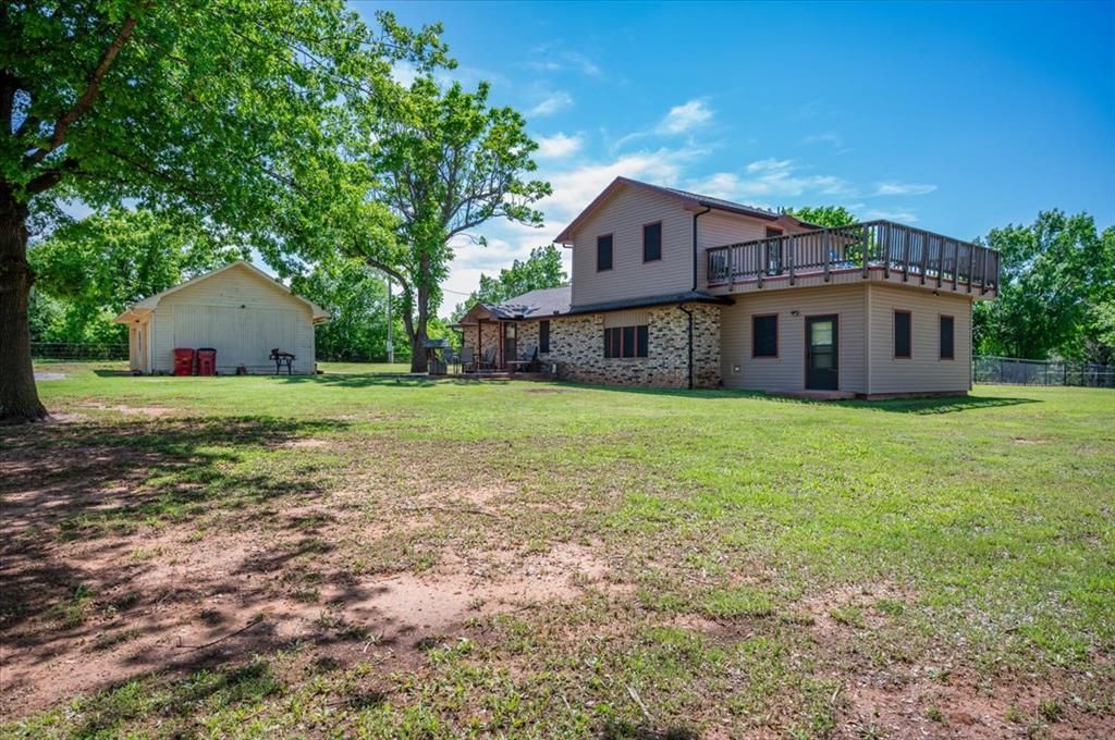 If you've been looking for a place where life can slow down, w/ space to breathe, room to grow, & the ability to build something of your own, this one checks the boxes. Welcome home to nearly 3 acres (MOL) just 5 minutes from downtown Lindsey w/ quick access to the interstate. This is the kind of property where you can picture it. Kids running in the yard, projects in the shop, evenings outside instead of stuck inside. The land has been opened up w/ mature trees cleared, creating a more usable, park-like setting while still keeping that country feel. A 30x30 shop, 2 car detached garage, & semi in-ground pool w/ deck give you a setup for both everyday living & the lifestyle people move out here for. The home has seen extensive exterior improvements, giving it a fresh, updated presence w/ full composite siding, new storm doors, new gutters, rebuilt soffits, & a roof replaced in 2021. The big stuff is done. It's been cared for, maintained, & set up for what's next. Inside, the layout gives you space to live, gather, & spread out. A sunken living room serves as the heart of the home, w/a study just off to the side & a large bonus room that can flex however your life needs it to, whether that's a 2nd living area, game room, or hobby space. The primary suite sits on the main level w/a walk-in closet, ensuite bath, & direct access to the laundry room. Upstairs, 2 bedrooms share a full bath & open to a rooftop deck w/ wide open views of the Southern Oklahoma countryside. w/ minimal restrictions, you have the freedom to use the property how you want. Start a small homestead, add improvements over time, or simply enjoy having space that's your own. The interior is ready for someone w/ vision, but the foundation is here. The land is here. The updates that matter are already done. All that's left is for someone to step in & make it theirs. Don't miss your chance to come see this home & see where your next chapter begins.